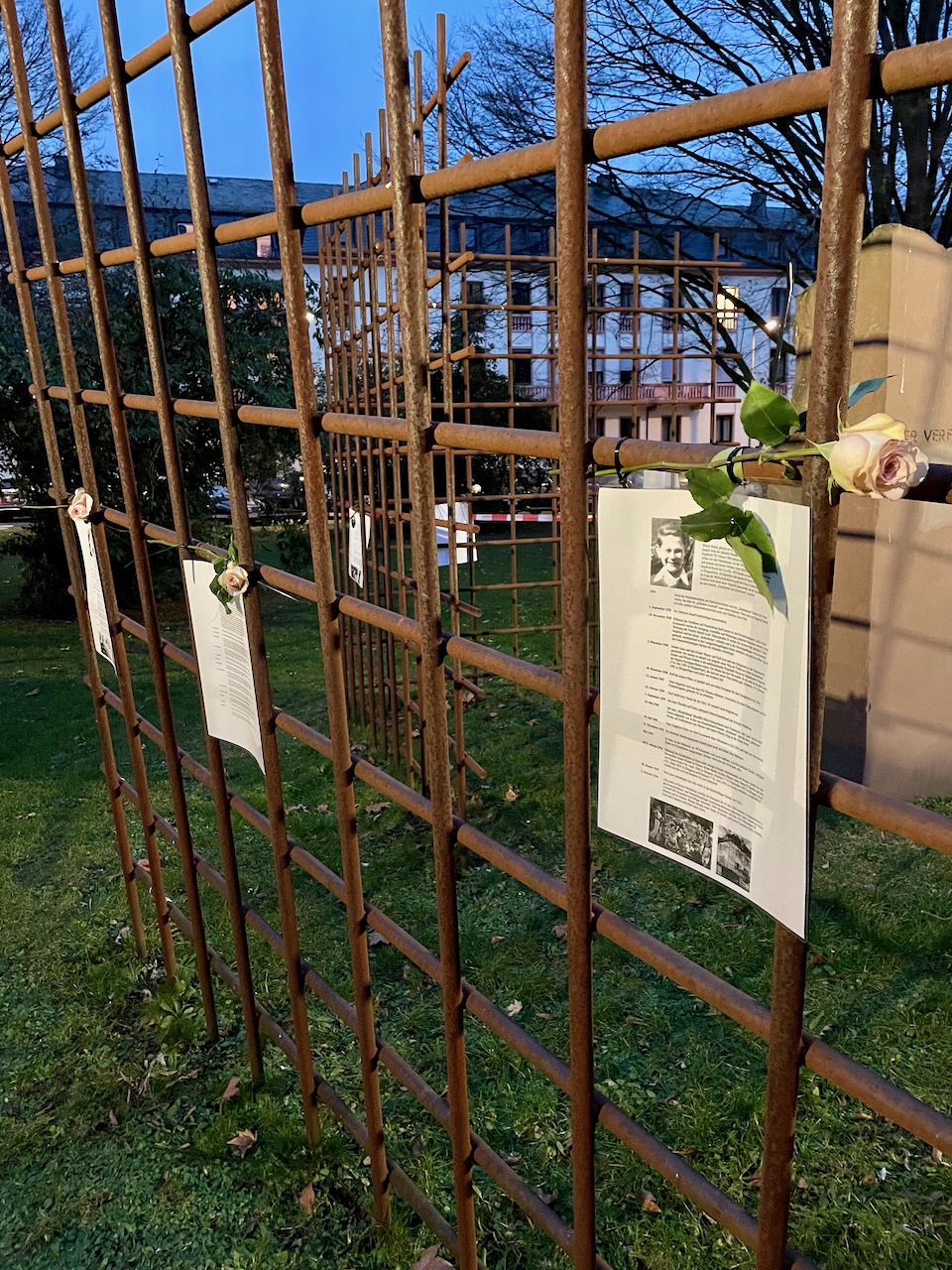 Bei der Statio am Reichenspergerplatz verlas Oberbürgermeister David Langner die Namen von 15 Schicksalen, Einzelpersonen und Familien. Sein Dank galt dabei auch den Schülerinnen und Schülern der Hans-Zulliger und der Diesterweg-Schule, die am Mahnmal Rosen und Informationen zu den verlesenen Opfern anbrachten.